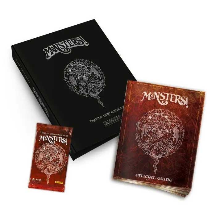 La collezione monsters! di dario moccia raccoglie 198 card, divise tra comuni e rare. i 198 mostri scelti provengono da tutto il mondo, attingendo tra differenti culture, mitologie, religioni, cosmologie e folklore. questo starter pack contiene 1 collector's album, 1 guida ufficiale e 1 bustina di trading card monsters! all’interno di ogni bustina saranno presenti 8 card: 7 comuni e 1 rara, quest'ultima sempre olografica. ogni bustina conterrà sempre una carta parallel, ovvero una versione alternativa delle card base caratterizzate da olografie speciali.